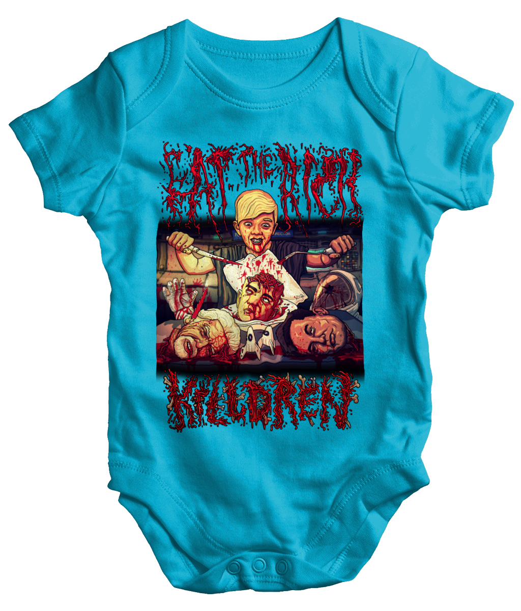 Eat the Rich full-colour design by Graphicsfix, on a baby grow! Choose your colour variation. UK postage only – flat rate of £2.99 per order. 100% organic cotton 200gsm Envelope style neckline, nickel free poppers Kornit DTG printing, Eco and Vegan friendly inks Colours are only as accurate as web allows.