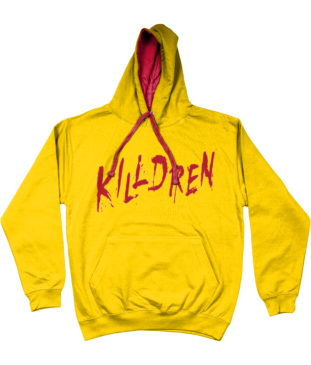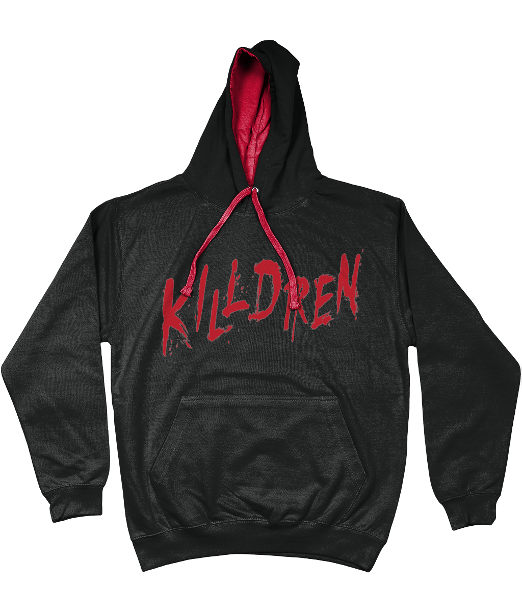 Unisex two tone hoodie with Killdren logo in red across the front and