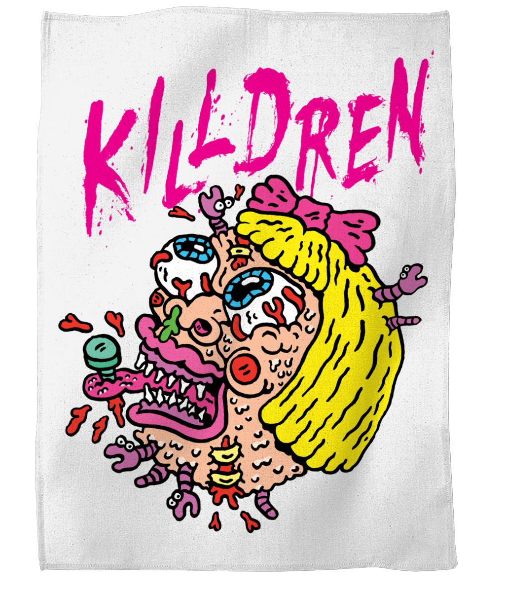 Get the original Killdren face design by Russell Taysom on a tea towel! 100% Cotton 170gsm Use our custom built online designer. Kornit DTG printing, Eco and Vegan friendly inks. * Colours are only as accurate as web allows.